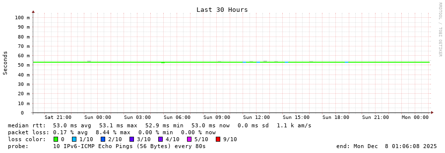 traceroute to 2a0b:2f00:0:234::151 (2a0b:2f00:0:234::151), 30 hops max, 80 byte packets - Generated at 2025-12-06 23:30:01
