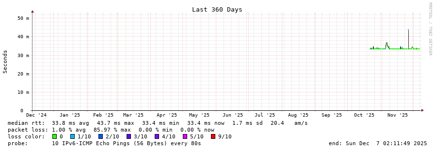 12 > 2001:b68:d:0:ee08:6bff:fe73:2da0 (2001:b68:d:0:ee08:6bff:fe73:2da0) [AS2108] 33.492ms 33.435ms 33.408ms
