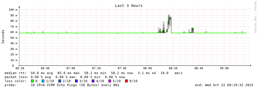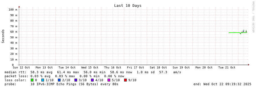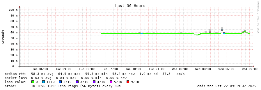 traceroute to 2a0c:9a40:8610:e3f::1 (2a0c:9a40:8610:e3f::1), 30 hops max, 80 byte packets - Generated at 2025-10-22 01:00:01