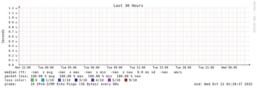 traceroute to fd69:226f:3a3c::2 (fd69:226f:3a3c::2), 30 hops max, 80 byte packets - Generated at 2025-10-21 20:15:02