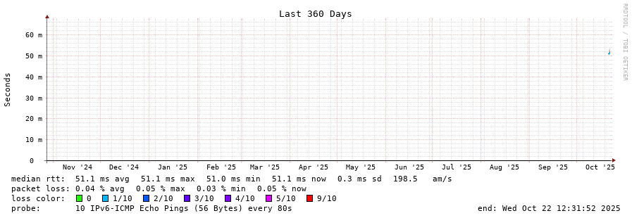 15 > 2a02:2f0f:163::a (2a02:2f0f:163::a) [AS8708] 52.033ms 51.984ms 52.046ms