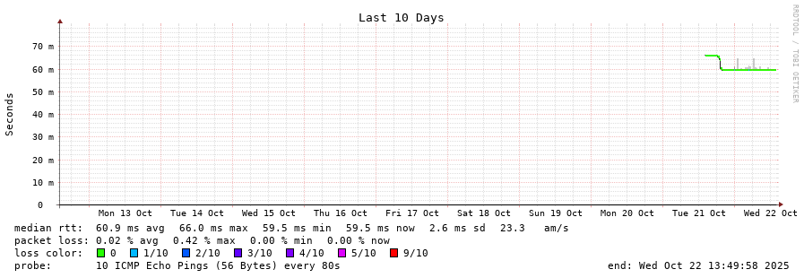 traceroute to 85.114.53.205 (85.114.53.205), 30 hops max, 60 byte packets - Generated at 2025-10-22 07:30:01