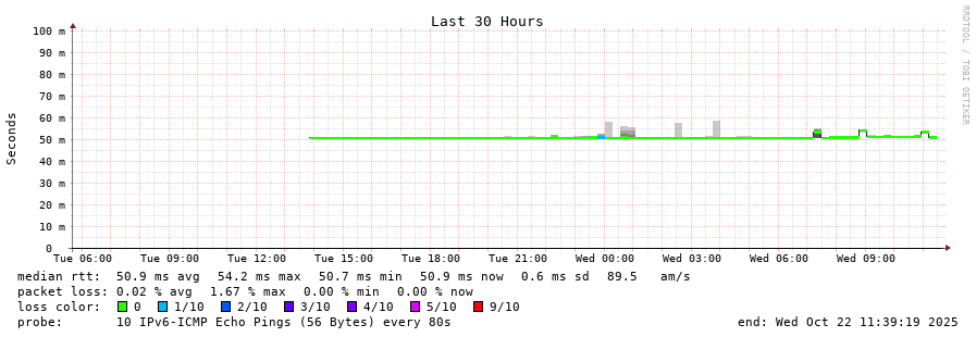 traceroute to 2a03:8f84::f1b6:9702:29c:9062 (2a03:8f84::f1b6:9702:29c:9062), 30 hops max, 80 byte packets - Generated at 2025-10-21 20:30:01
