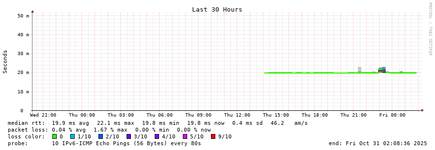 traceroute to 2001:41d0:302:1000::18:665e (2001:41d0:302:1000::18:665e), 30 hops max, 80 byte packets - Generated at 2025-10-30 22:45:02